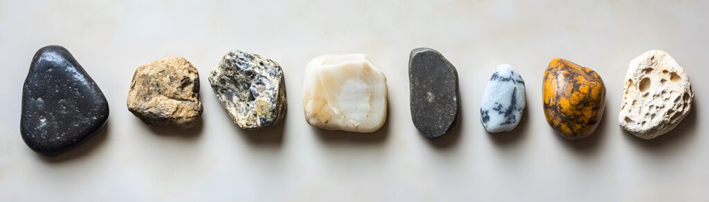 عنا أحجار طاقية خام ومصقولة، وكمان إكسسوارات أحجار جاهزة للبس عشان الطاقة تكون معكو بكل لحظة.