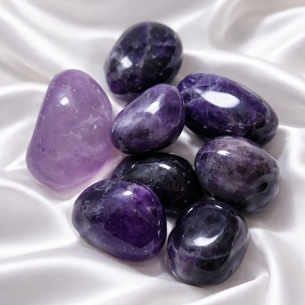 حجر الأمتيست: حجر السلام والروحانية، بخفّف الأفكار الكتيرة والخوف، وبيرجعلك هدوءك الداخلي. بيساعدك تنام أعمق وتحلم أوضح، وبيفتح البصيرة لتسمع صوت حدسك. إله طاقة شفاء قوية، بتنضّف الطاقات الثقيلة وبتوازن المشاعر لتعيش راحة أكتر وصفاء