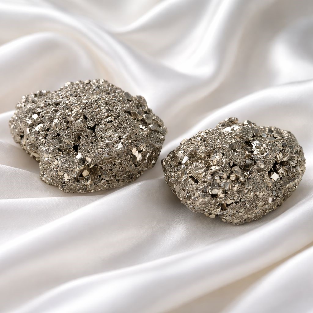 حجر البيريت: حجر الوفرة والقوة، بيجذب طاقة المال والنجاح، وبيعزّز الثقة بالنفس والإبداع. بيحمي من الطاقات السلبية، وبيعطيك شجاعة تتحرك بخطوات واثقة نحو أهدافك. إله طاقة شفاء بيدعم الجهاز العصبي وبيعطي طاقة جسدية ونشاط متجدد